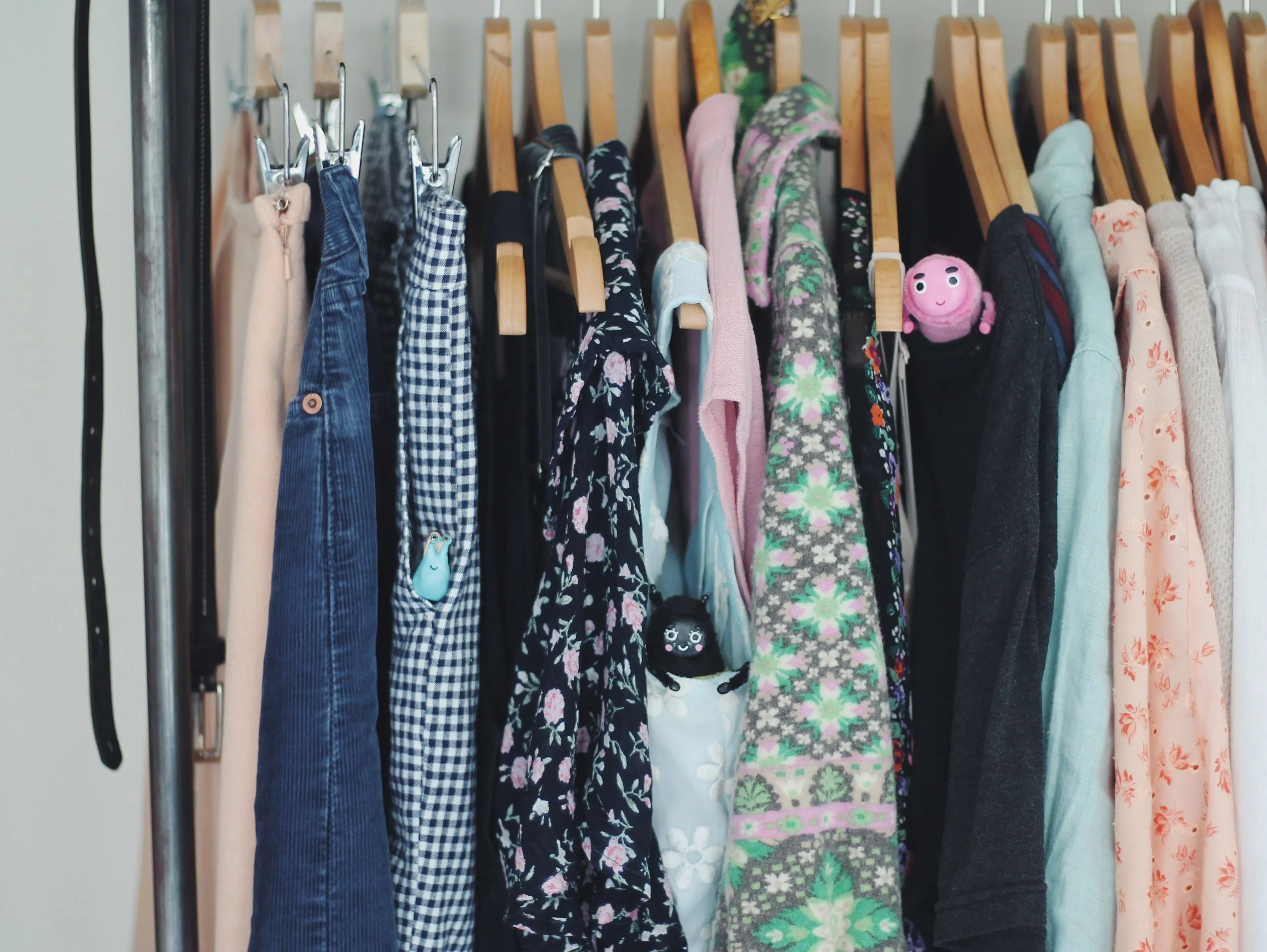 In the UK alone the average person has about 118 items in their wardrobe, but one quarter of that (31 items) will not have been worn in the last year. I counted in my own wardrobe roughly 89 items (not including the 9 jewellery pieces I wear all the time).